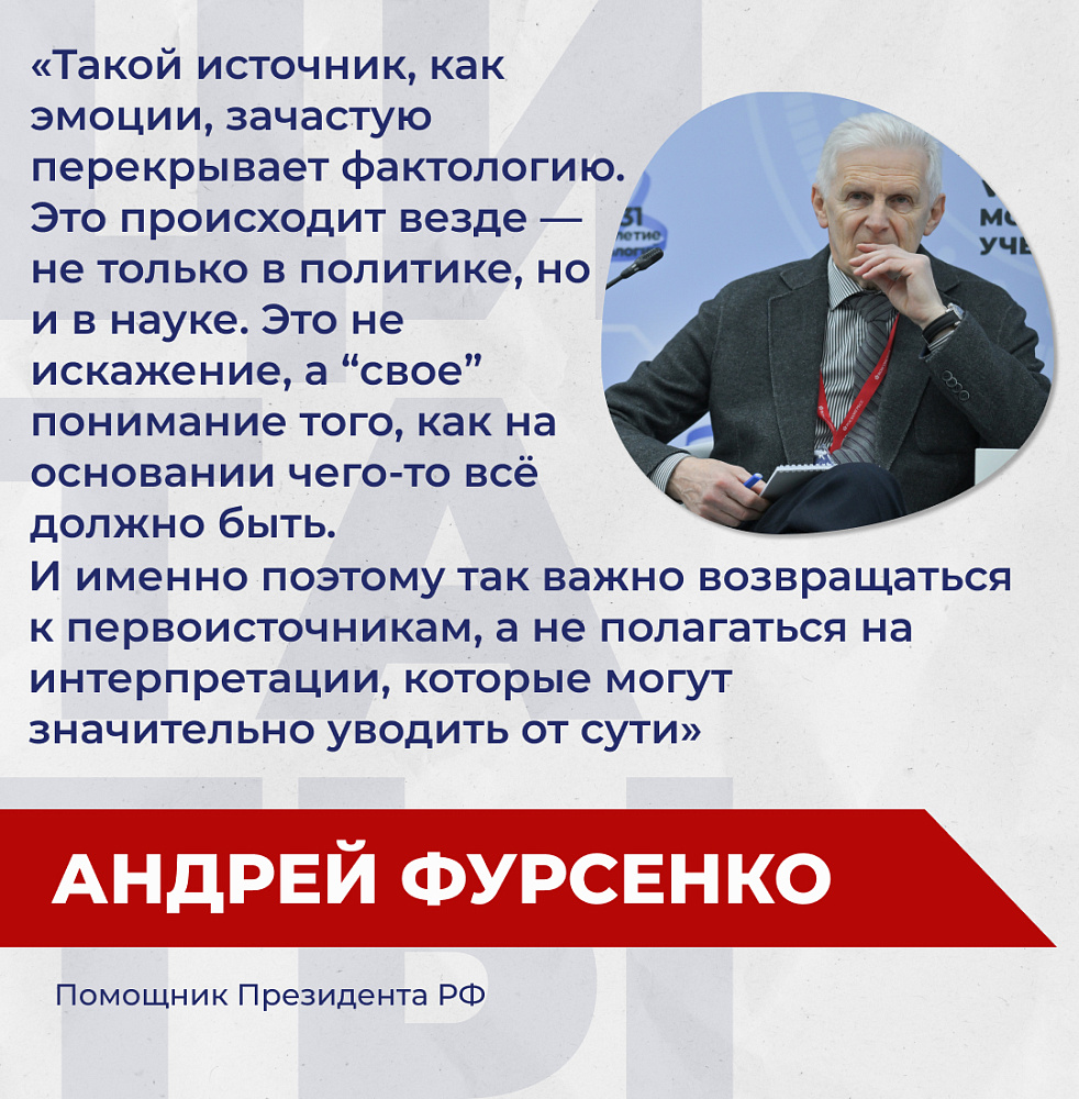Андрей Фурсенко, помощник Президента РФ, отметил глубинную человеческую особенность воспринимать события через призму чувств: